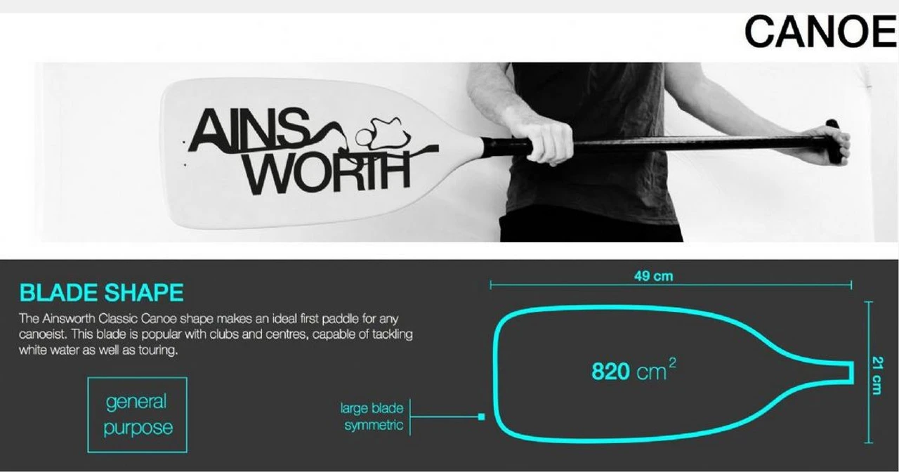 Classic C100 is one of Ainsworth canoe paddle’s best selling products. This paddle is designed for the canoe fanatic looking for a light, durable all round blade. Fitted with a comfortable T grip, the paddle’s blade has natural floatation and hence feels light in the water. This paddle is both great on flat water touring and on white water and is a great first paddle for any canoeist.