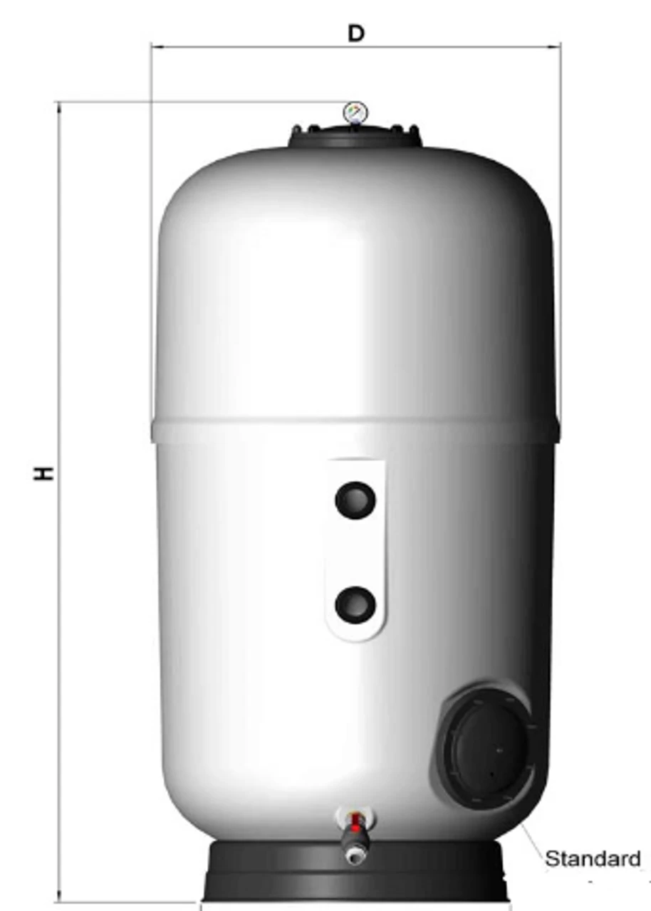 High performance commercial sand filter manufactured in durable polyester, with an external gel-coat finish