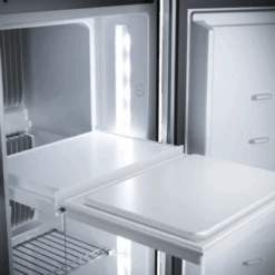 The RCL 10.4T comes in a stylish anthracite black finish, with internal LED lighting strips to provide a soft light in the inside of your fridge. The door uses a double locking system, ensuring it stays securely closed when in transit. Dometic’s handy VG fresh crisper tray has adjustable humidity control, allowing you to preserve your fruit and veg to perfection, and refined aluminium handles give the exterior of your fridge a timeless appeal.