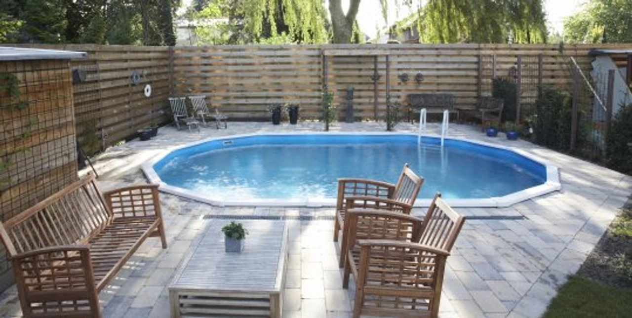 The Doughboy Regent Above Ground Swimming Pool uses the COM-PAC Oval Support System (instead of the buttress side supports, favoured by many contemporary swimming pools) and as a result is now ideal for even the smallest of spaces.