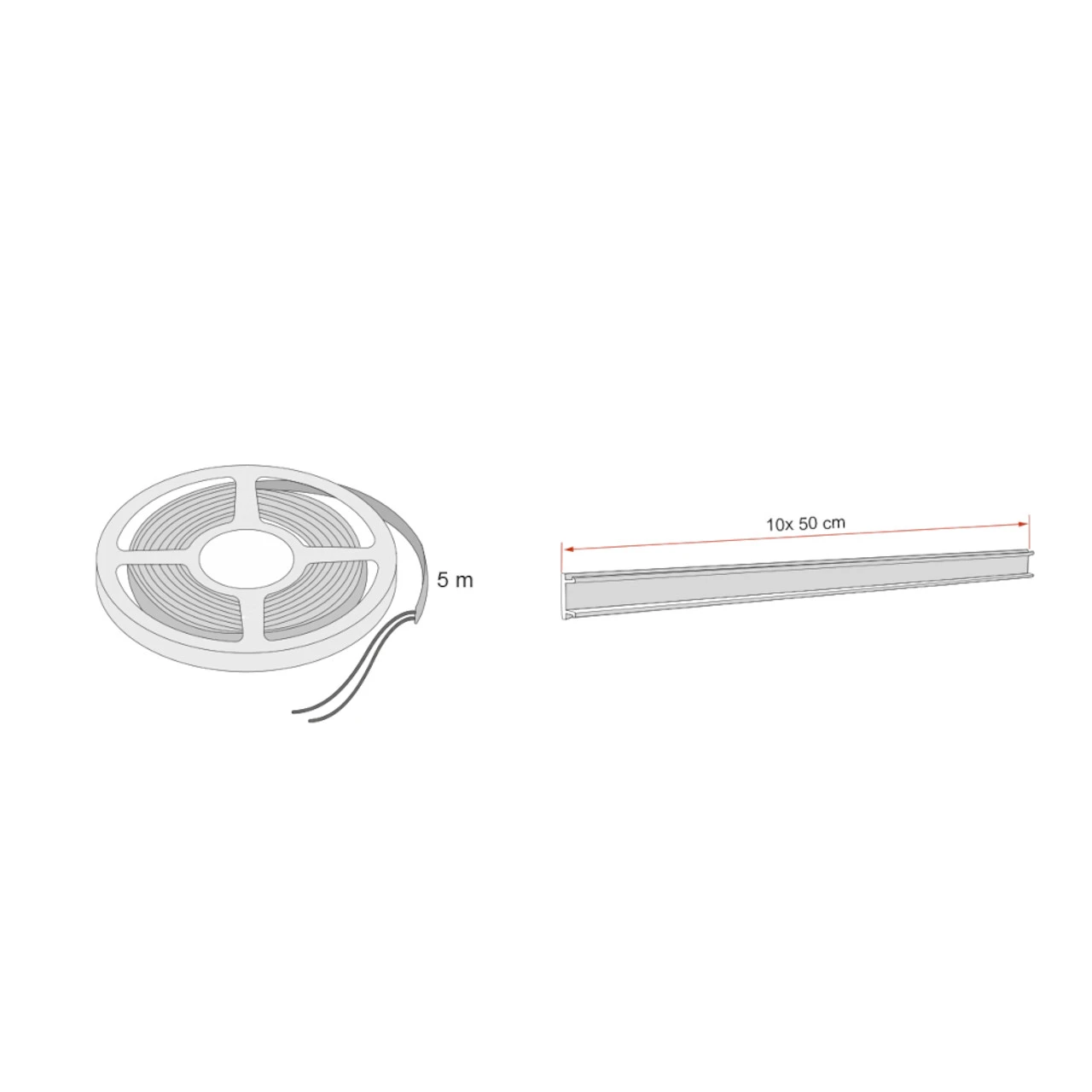 With a bright white colour tone, this low weight LED strip is designed to fit inside the internal profile area of the front bar of the awning with the lens cover over and provides 840 lumens of light. The 5m length can also be easily shortened to suit installation needs.