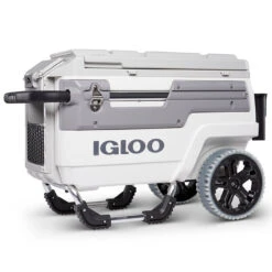 - Oversized Wheels help the Igloo Trailmate Marine Wheeled Cool Box tackle sand and other challenging terrain with the superior traction and ground clearance of 10-inch, never-flat, non-marking wheels.
