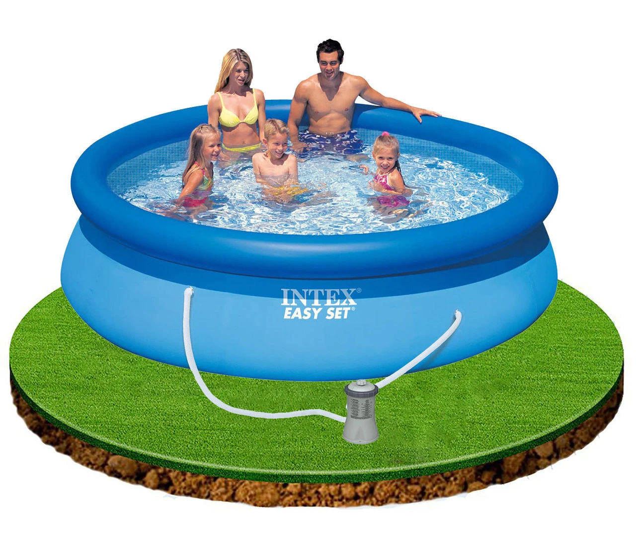 - When setting up the Intex Easy Set Pool with Filter Pump it’s essential that you ensure that it is positioned on perfectly level ground so that the pool fills up correctly (otherwise the sides will bow out and the water level will be lopsided!).