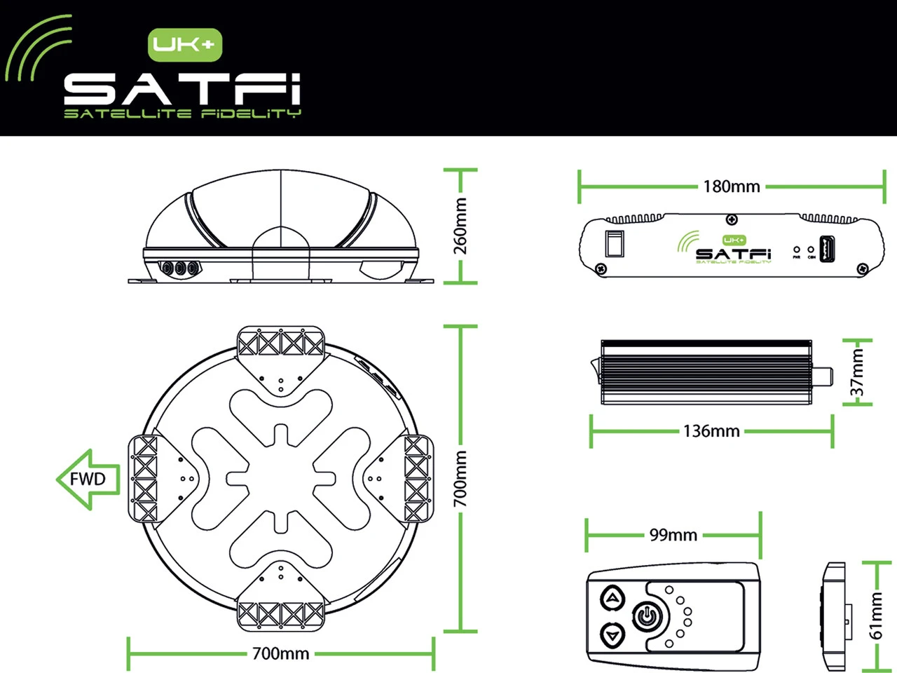 The SatFi UK + is an ultra slimline low profile TV satellite system which features simple operation along with on demand power, the UK Plus is also compatible with any satellite built in TV or reciever.
