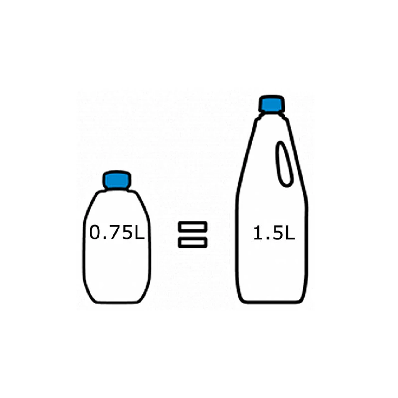 - 750ml concentrated bottle equivalent to 1.5L standard