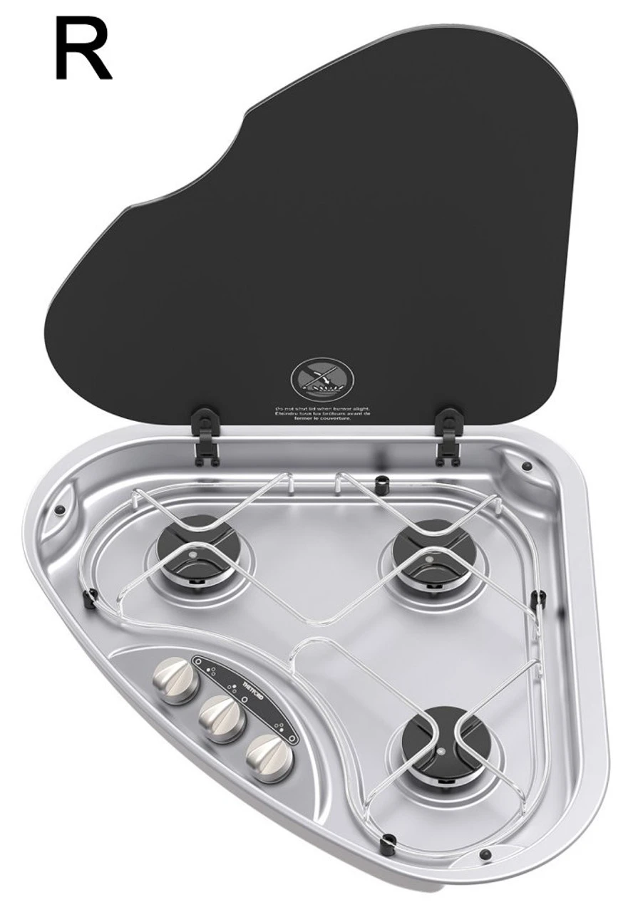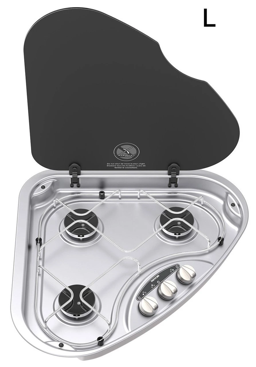 Spinflo 330 Triangular 3 burner hob with 12V ignition for campervans and caravans