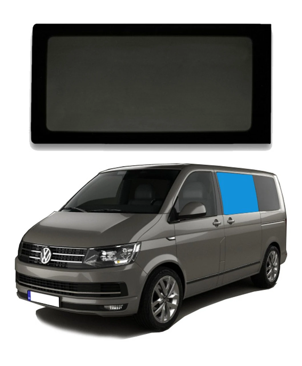 Manufactured to OEM standard, this bonded window is suitable for the left (passenger side on RHD vehicles) side of either the SWB (short wheel base) or LWB (long wheel base) variants of the VW Volkswagen Transporter T5 and T6 vans.