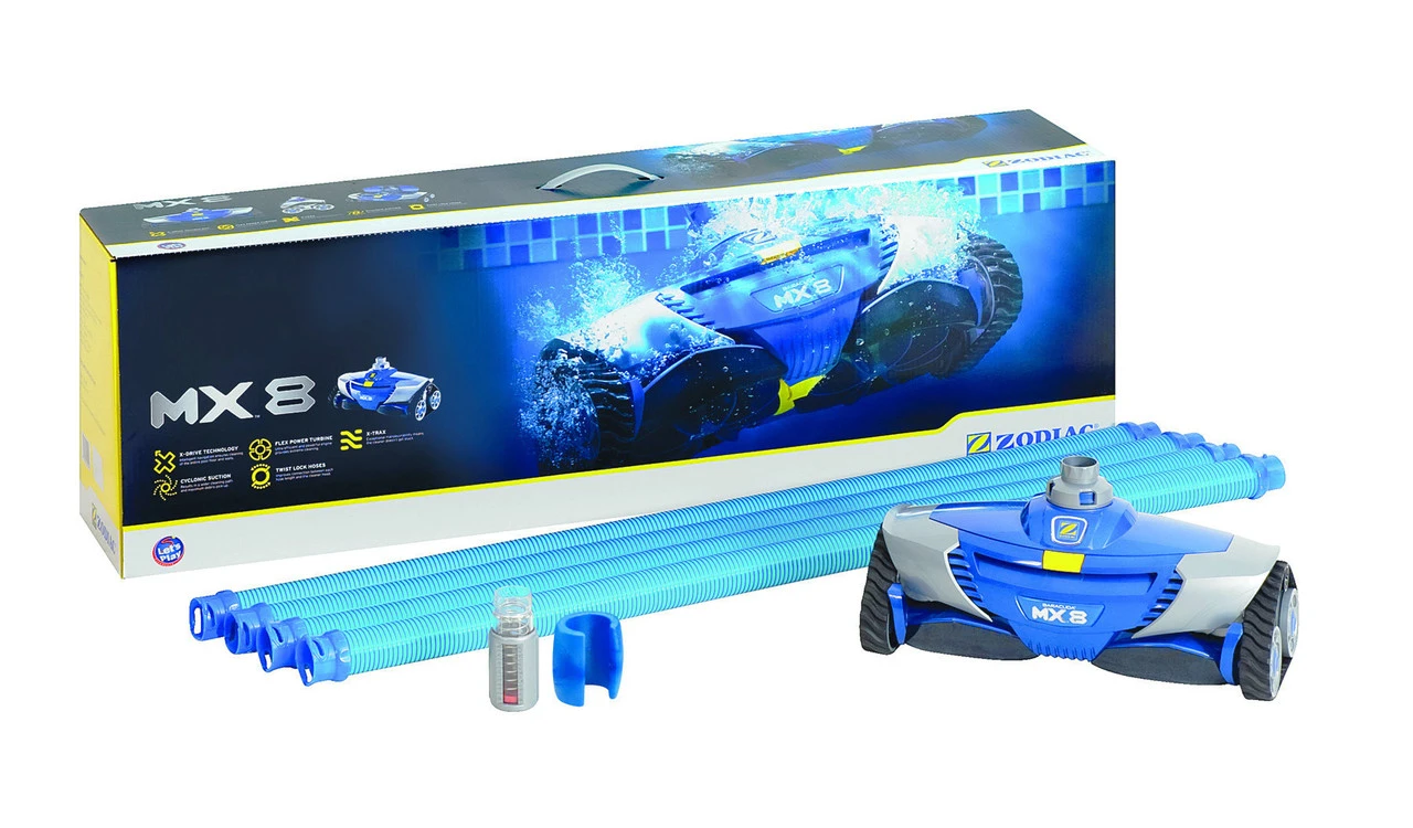 An efficient and powerful automatic swimming pool cleaner, the Zodiac Baracuda MX8 cleaner combines a dual cyclonic suction for a speedy, energy efficient and powerful vacuum alongside a thorough capacity for cleaning any size or shape of swimming pool.